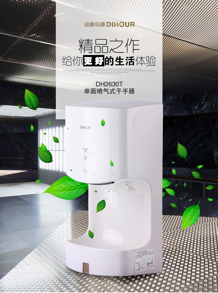 9、DH2630T干手机的高效节能,能够大 大减少擦手纸的使用,从而保护环境。