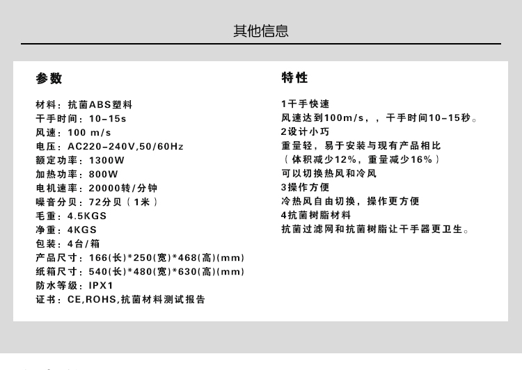 DIHOUR DH3600 304不锈钢高速感应干手机
