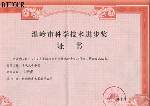 台州迪奥电器有限公司很荣幸获得了温岭市人民政府颁发的"温岭市科学技术进步奖"