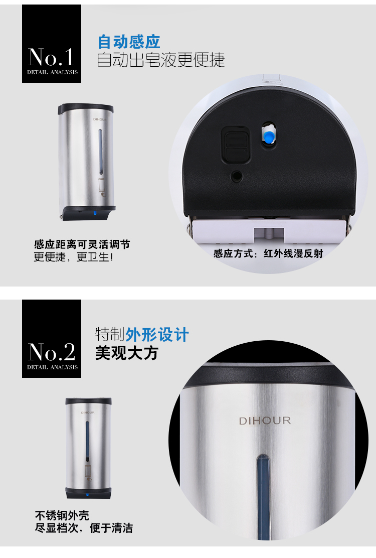 不锈钢感应皂液器特性: